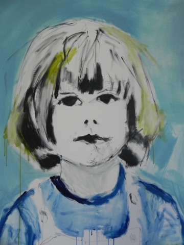 Mädchen mit Latzhose Eitempera auf Leinwand 2013 100 x 120 cm